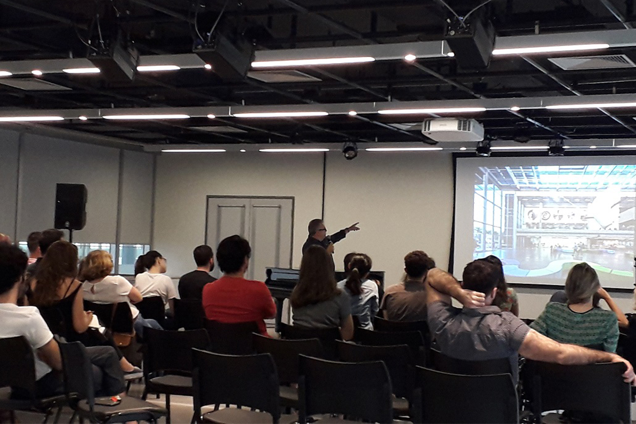 Ocorreu um encontro com os alunos da Pós-Graduação da FAUUSP, na disciplina “Arquitetura Contemporânea Paulista / Crítica de Arquitetura”, coordenada pelos professores Monica Junqueira e Hugo Segawa.